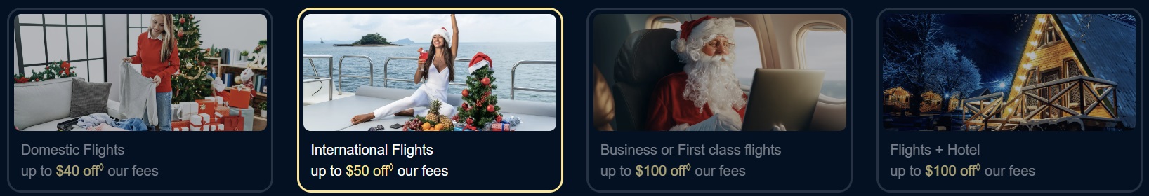 Splňte si své sny. A rezervujte si své příští prázdninové dobrodružství během sváteční sezóny a využijte vánoční nabídky a promo kódy CheapOair, díky kterým získáte až 50% slevu na další objednávku rezervace.