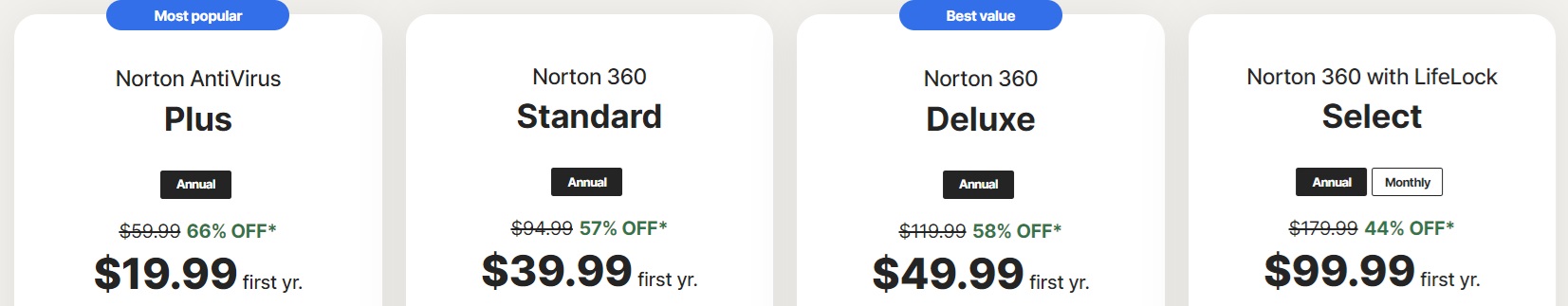 Stávající zákazníci si mohou vybrat z různých kupónů Norton, jejichž cílem je přinést jim ty nejlepší slevy. Například mohou získat více než 80% slevu na roční plán přihlášení k odběru nebo mohou ušetřit až 60 % na vybrané produkty.