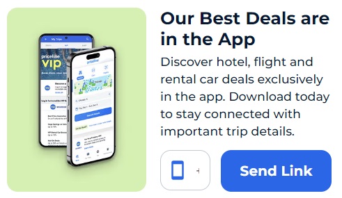 Rezervujte na cestách a stáhněte si nyní oficiální mobilní aplikaci Priceline.com, která je k dispozici v App Store a Google. Budete si moci rezervovat svůj příští let, hotel a tak dále, kdykoli budete chtít a kamkoli půjdete. Získáte také exkluzivní nabídky v aplikaci, které na oficiálních webových stránkách nenajdete, a získáte přístup k neuvěřitelným funkcím, které vám umožní porovnávat cestovní nabídky a provádět jakékoli dodatečné změny v rezervaci již během cestování.