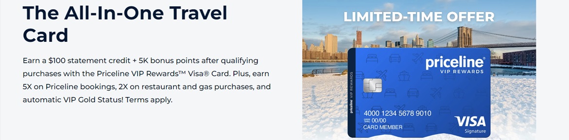 Chcete být odměňováni při každém cestování? Zapojte se nyní do oficiálního VIP programu Priceline.com a cestujte více, abyste získali ještě více a rychleji získali VIP status. Staňte se členem VIP Platinum, pokud máte 25 uskutečněných cest, a získáte přístup k politice Garance nejlepší ceny, až 50% slevy na více než 45 000 hotelů, až 20% slevy na VIP pronájem aut, až 50% slevy na hotely a 20% slevy na pronájem aut, pokud je přidáte ke stávající cestě, 10% kupón Express Deal po každé cestě a také First Priority Premium Customer Service. Nebo si nyní zažádejte o kartu Priceline VIP Rewards Visa Card a získejte kredit ve výši 150 USD a 5000 bodů po útratě 1000 USD během prvních 90 dnů od založení účtu. S tímto programem získáte 5x body za každý dolar utracený za rezervace na Priceline.com, 2x body za nákupy benzínu a restaurací a také 1x body za všechny ostatní nákupy.